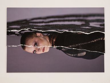 Pinned Up, 12 x 18 inches. Using safety pins to reattach the image, this piece represents the healing process of the person. I decided to rip the image the way I did because it takes away three out of five senses and once, they are missing you realize how valuable they are. At the same time, it heightens your use of other senses and allows you to get in touch with pieces of yourself in a more meaningful way. This image is printed on fine art paper to give it the maximum amount of texture while still being able to rip it. I wanted to focus on mental health and the imperfections we have as humans. Society's expectations cause unnecessary self-criticism that leads people to dissect themselves in unnatural ways. Every human is beautiful just the way they are and when we deconstruct and overanalyze ourselves the stigmas placed on us by others cause us to view ourselves in negative ways. If you are only looking at a person from the outside, you are not really seeing them at all.