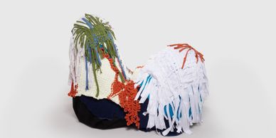 “Nest” Foam, knitting, FDM and wood support, 48 x 44 x 22 inches. The view from Product Designer