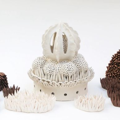 The installation consists of a collection of hand-builded ceramic sculptures, each featuring fluid, tentacle-like spines. The sculptures appear simultaneously soft and rigid, embodying the dichotomy of vulnerability and resilience found within the human spirit. This juxtaposition mirrors the artist's fascination with the microscopic world, particularly the unique characteristics of slime molds – organisms that defy traditional classification and exist at the boundaries of the known biological world.