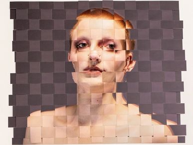 “Skin Deep” inkjet print 20 x 24 inches. For this image I used two materials to weave the same image to show the contrast in texture. I used fine art paper and matte paper to accentuate different textures in the skin. Weaving the horizontal and vertical strips created the dimension necessary to imitate added layers of skin. After I finished weaving the image, I pulled the tabs to make the image a little distorted to represent the natural imperfections we have. I wanted to focus on mental health and the imperfections we have as humans. Society's expectations cause unnecessary self-criticism that leads people to dissect themselves in unnatural ways. Every human is beautiful just the way they are and when we deconstruct and overanalyze ourselves the stigmas placed on us by others cause us to view ourselves in negative ways. If you are only looking at a person from the outside, you are not really seeing them at all.